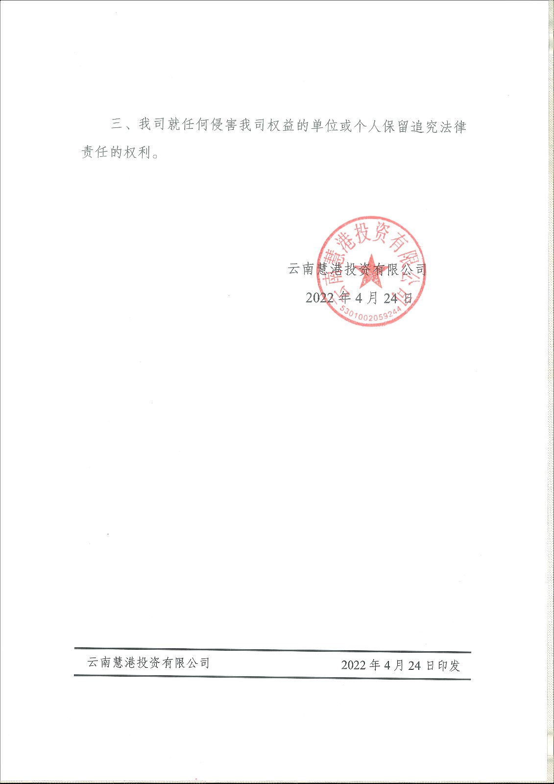 您当前的位置:网站首页 - 云南慧港投资有限公司声明
